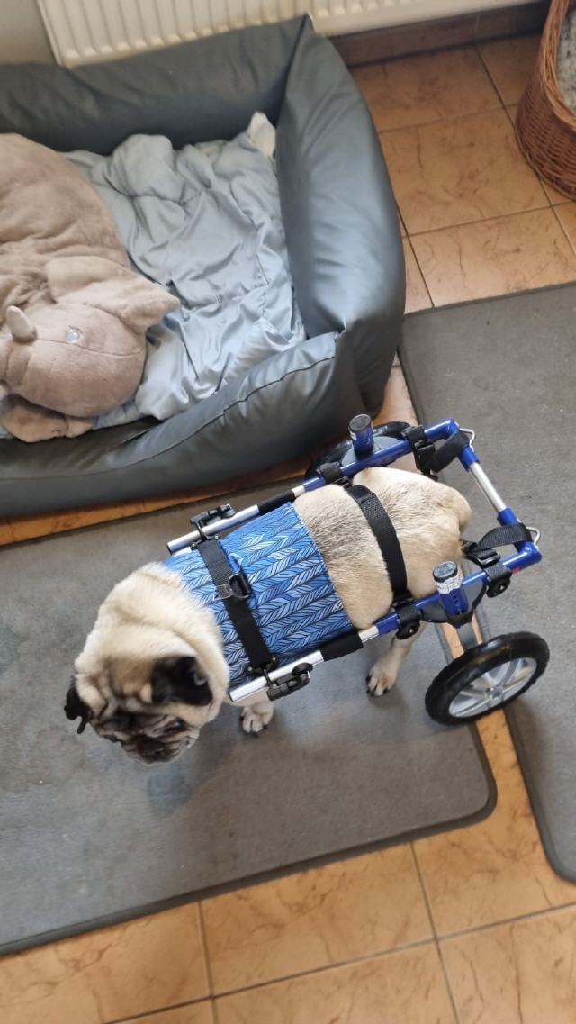 Die Tierärzte und Physiotherapeutin haben einen Rolli empfohlen, weil Rocky dadurch noch mobil sein kann.
