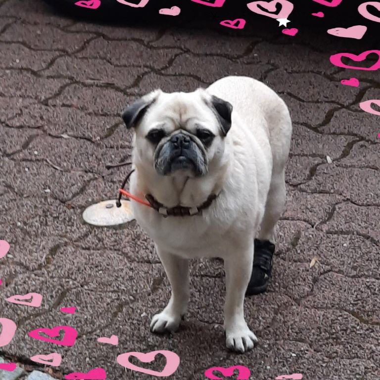 Vor einiger Zeit lernte ich Alvin und sein Frauchen bei unserer Tierärztin kennen. Wir kamen ins Gespräch und natürlich erzählte ich von unseren Glücks-Möpsen.