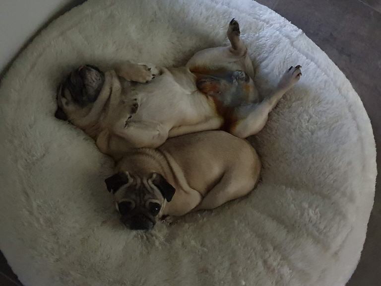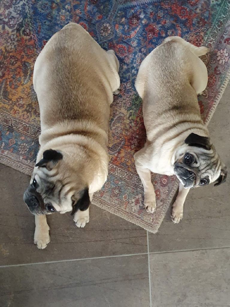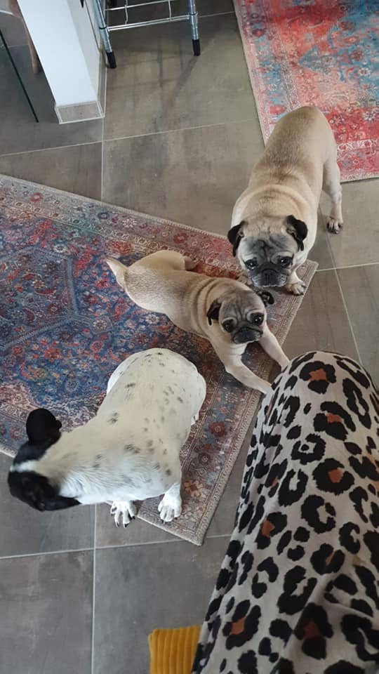 Petra und ihr Mann haben in diesem Jahr 2 ihrer geliebten Möpschen verloren und Ingo und Mariechen werden schmerzlich vermisst. Als Jennys mir sagte das sie 2 Möpse bekommt, frug ich Petra und ihren Mann ob die beiden Möpschen vielleicht zu ihnen auf Pflegestelle kommen könnten. ( tada... gut eingefädelt denn besser hätte es für Mensch und Tier nicht kommen können.