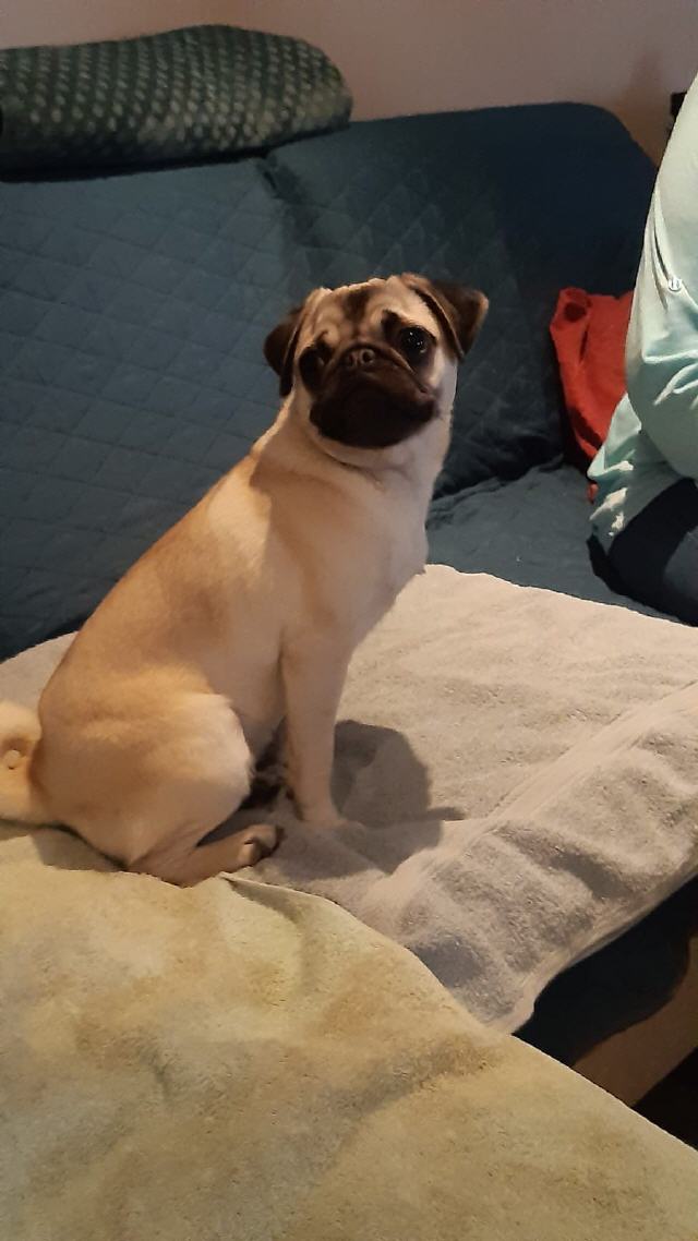 Dieses kleine Mopsmädchen leidet an einer schlimmen Patellaluxation am linken Hinterlauf und hat massive Probleme beim laufen.