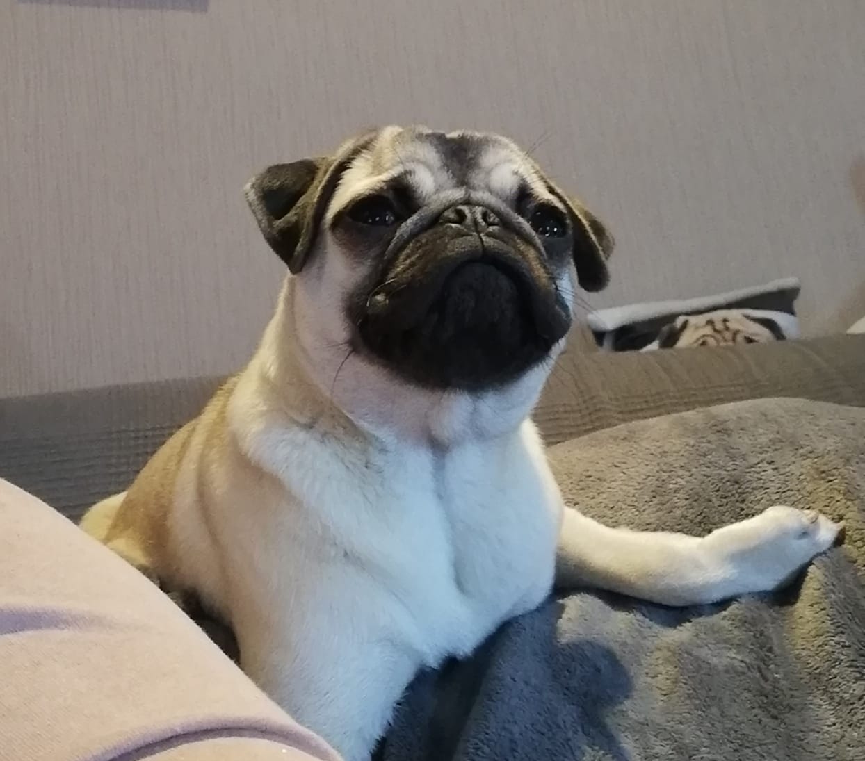 Sie ist gut angekommen und hat sich nach den paar Stunden schon gut eingelebt. Sie liegt ganz entspannt auf dem Sofa und schläft.